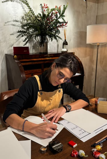 Experiència de cal·ligrafia per a clientes en esdeveniment privat de marca. Desembre 2025